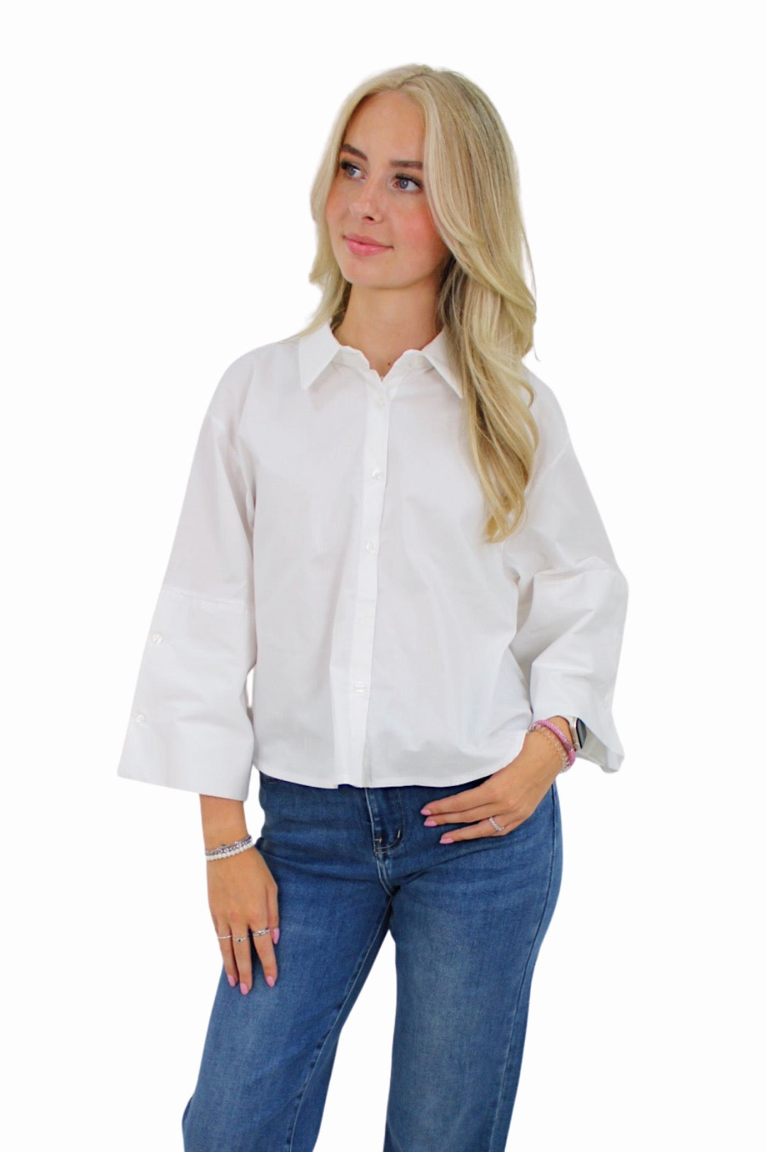 Prachtige basic witte blouse met flair mouwen. De blouse heeft knoopjes op de mouwen. De blouse heeft een fijne lengte.... Lees meer