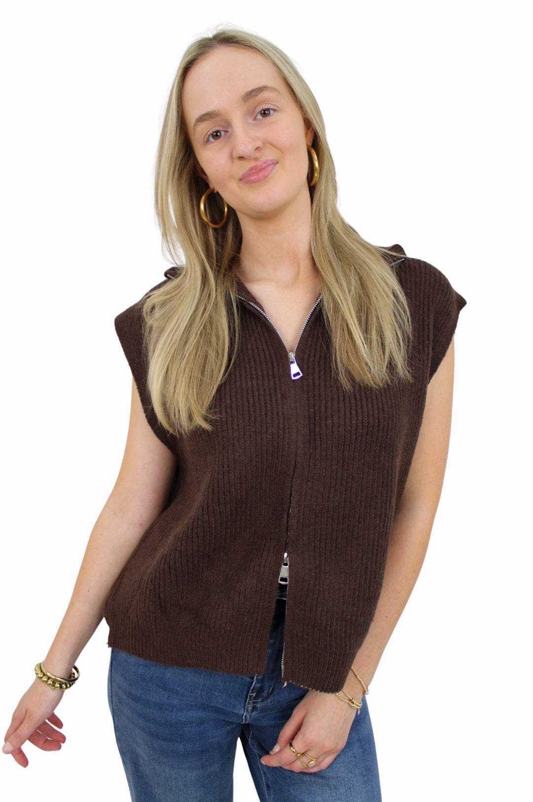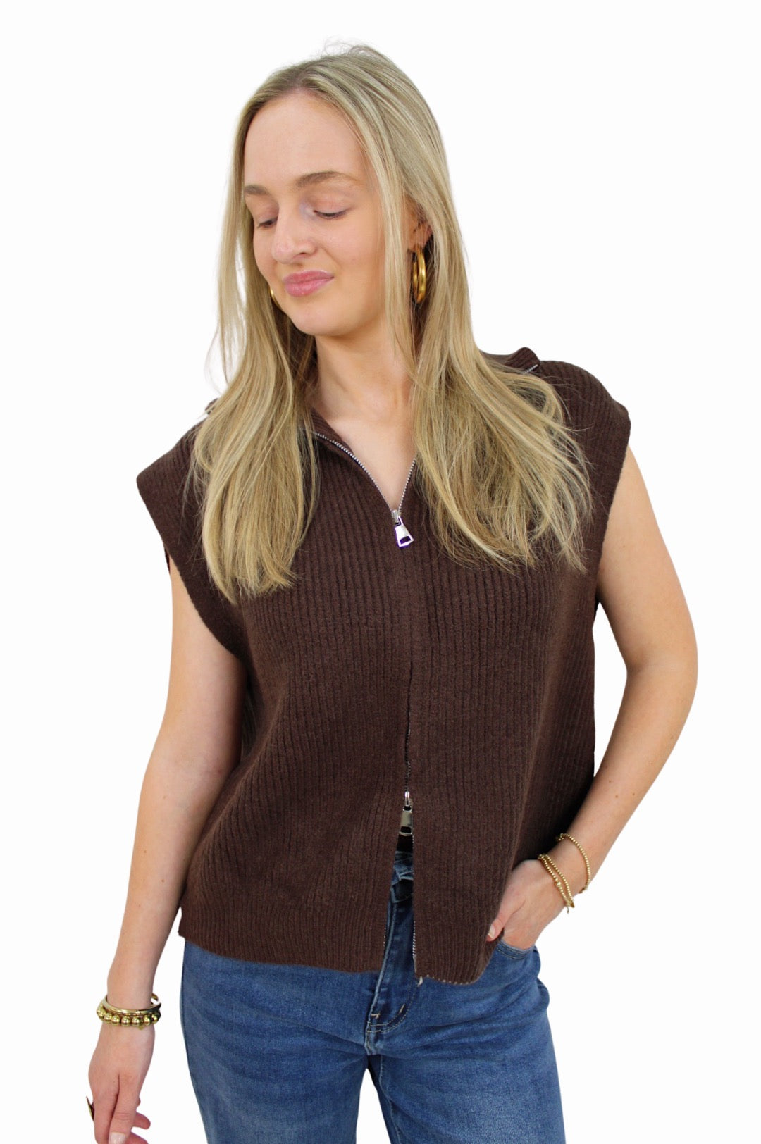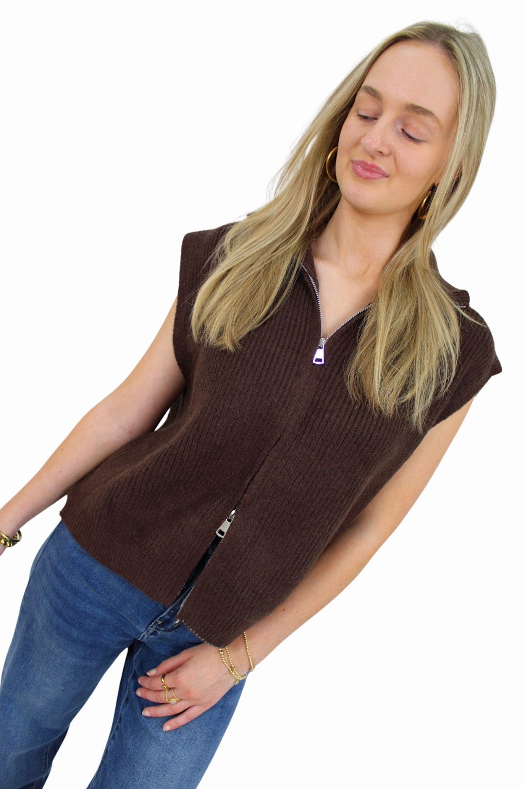 BASIC ZIP TOP | BROWN