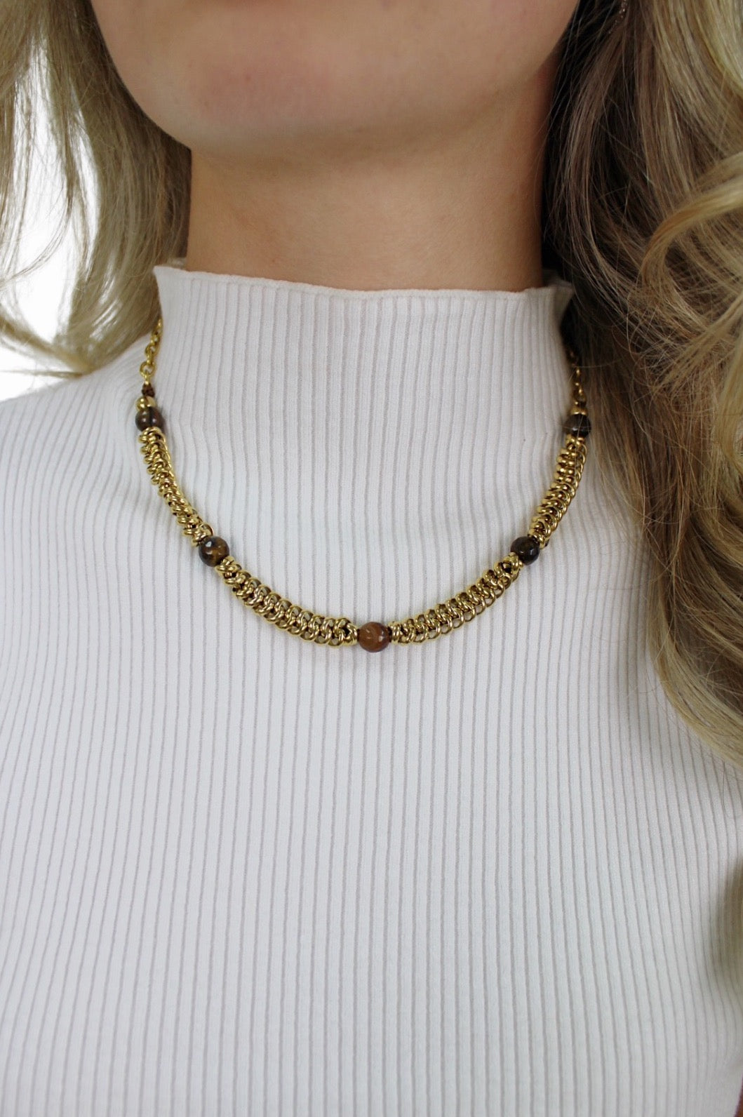 Prachtige basic ketting met bruine steentjes. De ketting is perfect te combineren met andere kettingen. (al onze sieraden zijn nickelvrij... Lees meer