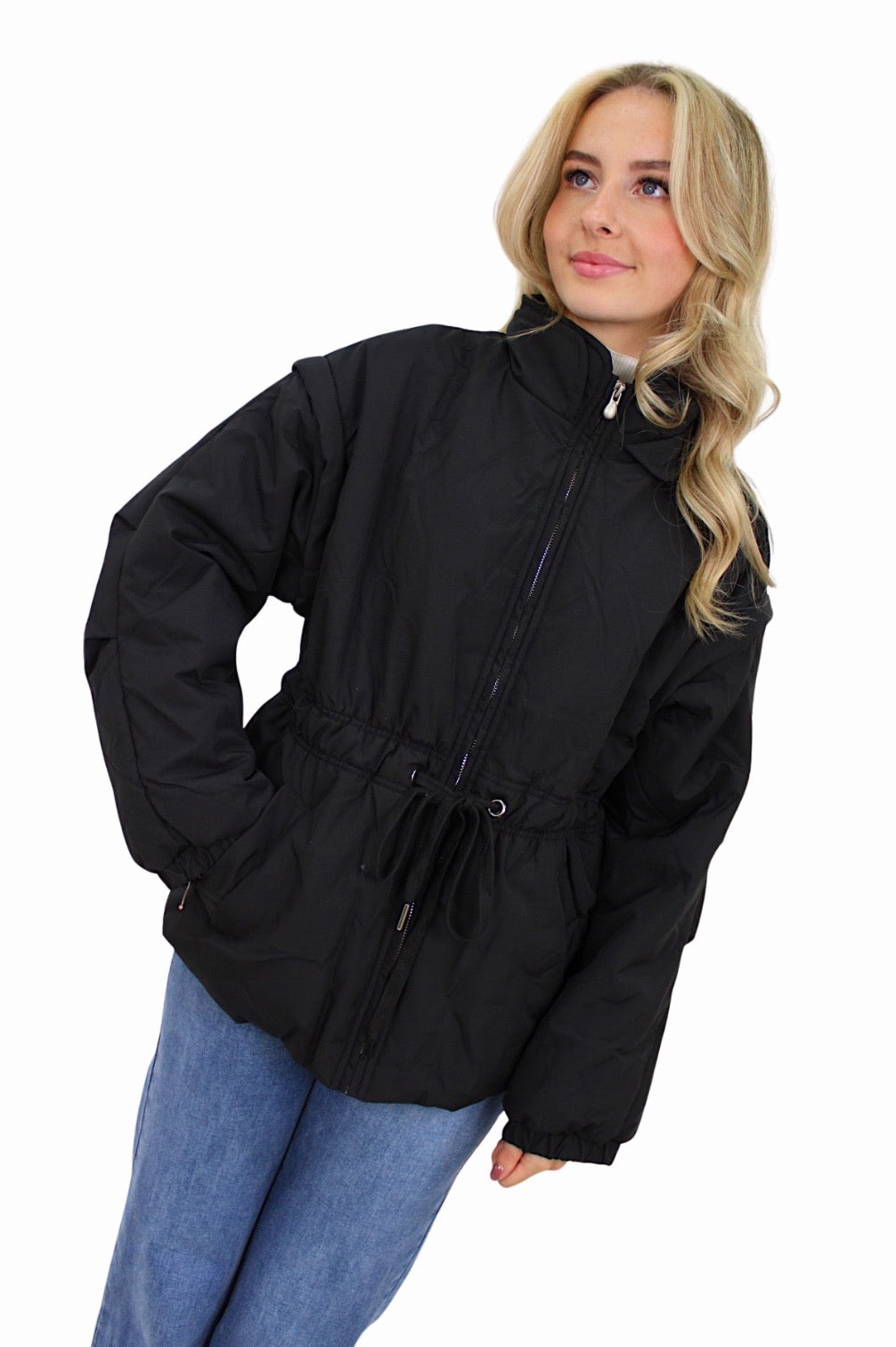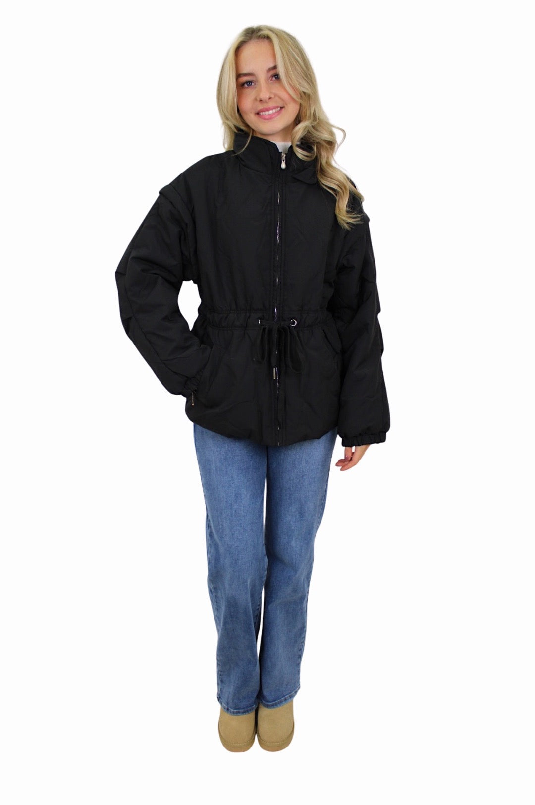 Leuke winterjas die je kunt tailleren in de taille. De jas is volledig gevoerd en dus echt winterproof. De jas... Lees meer