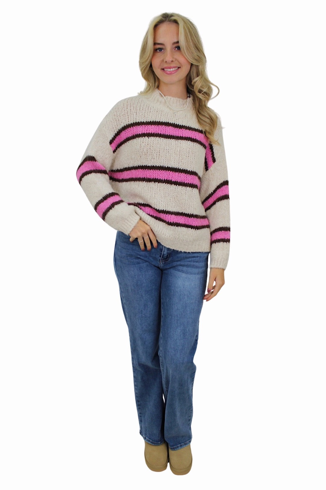 IVY DOUBLE STRIPED COMFY KNIT | VANILLA/HOTPINK