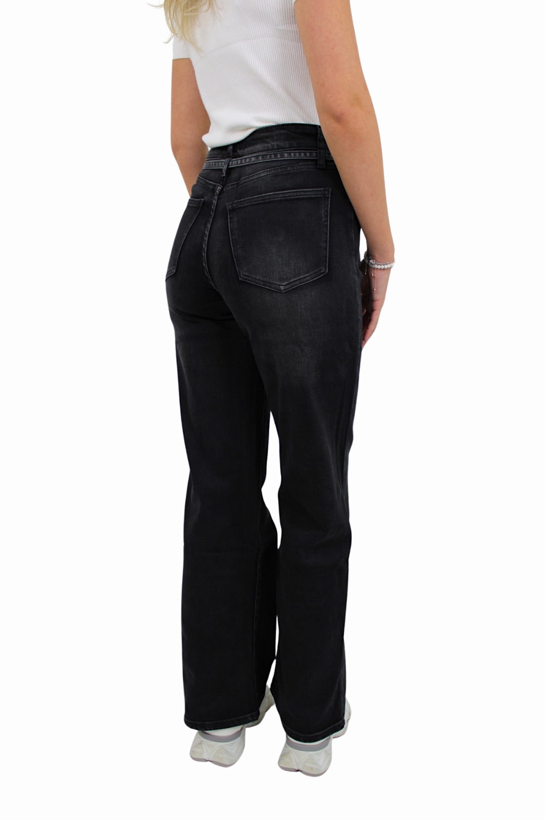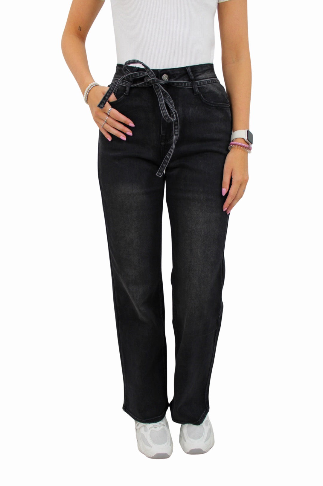 LAULIA BELT WIDE LEG JEANS | BLACK