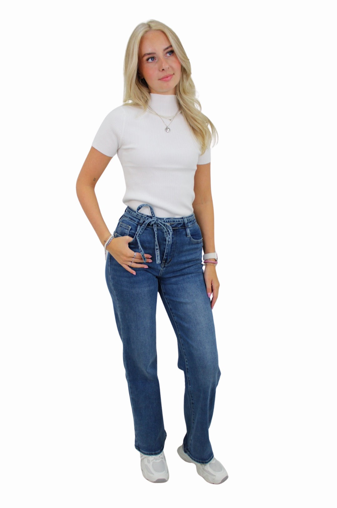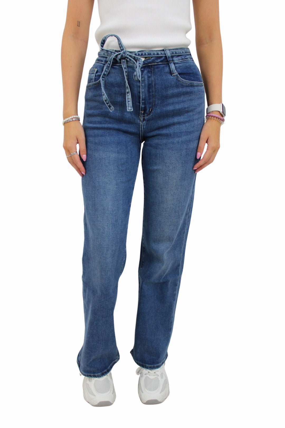 LAULIA BELT WIDE LEG JEANS | BLUE