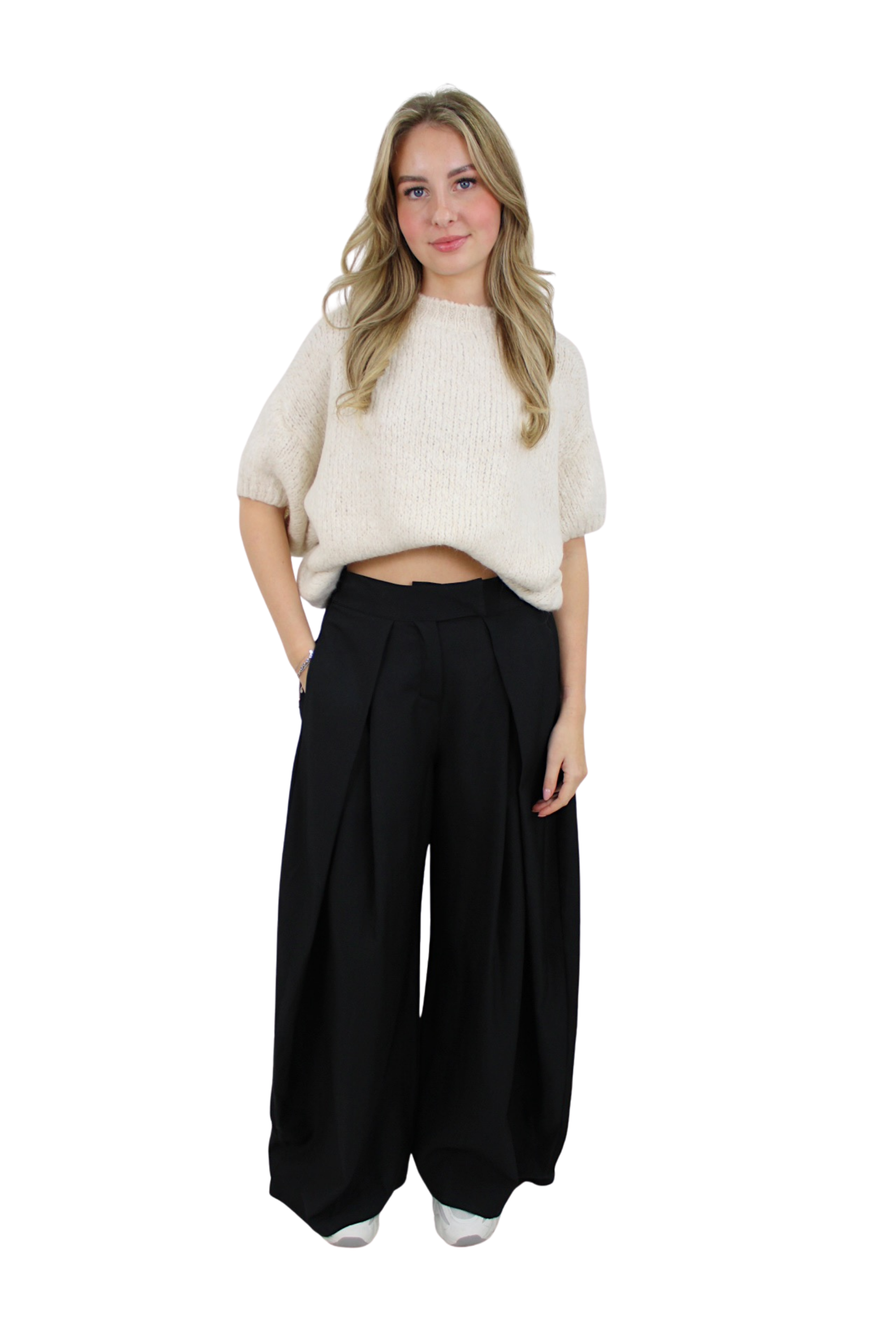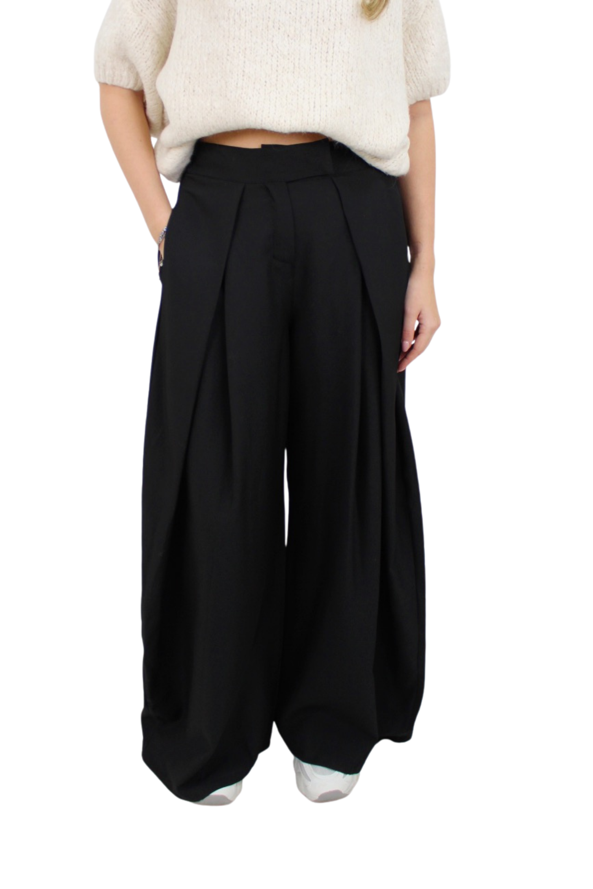 Mega trendy pantalon met een mooie wide leg. De pantalon heeft leuke plooien aan de voorzijde. De pantalon bevat stretch... Lees meer