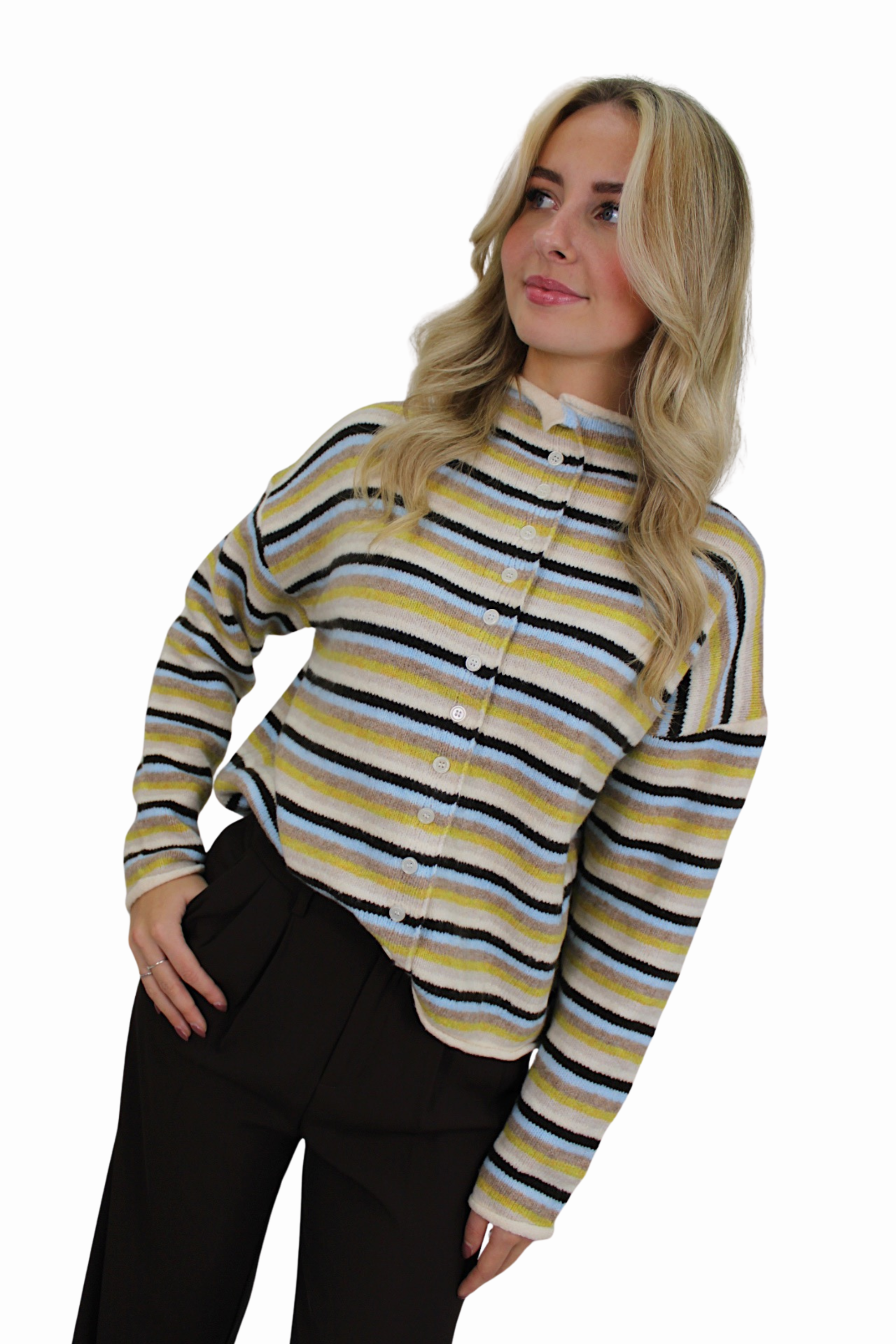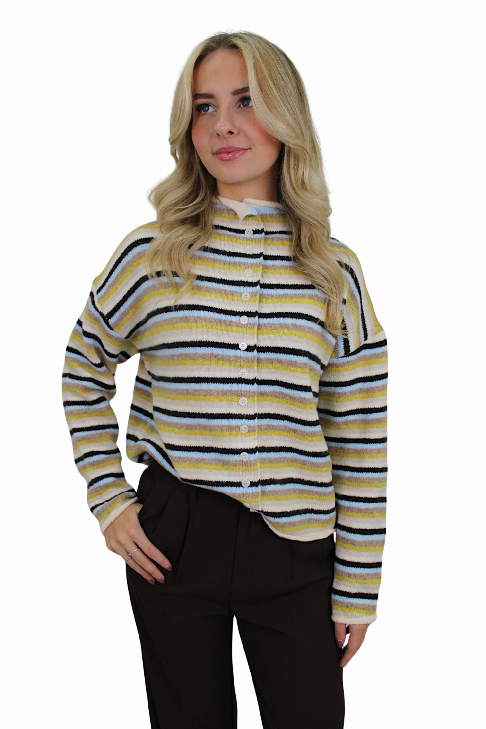 MABLE SOFT STRIPED CARDIGAN | BLUE/GREEN