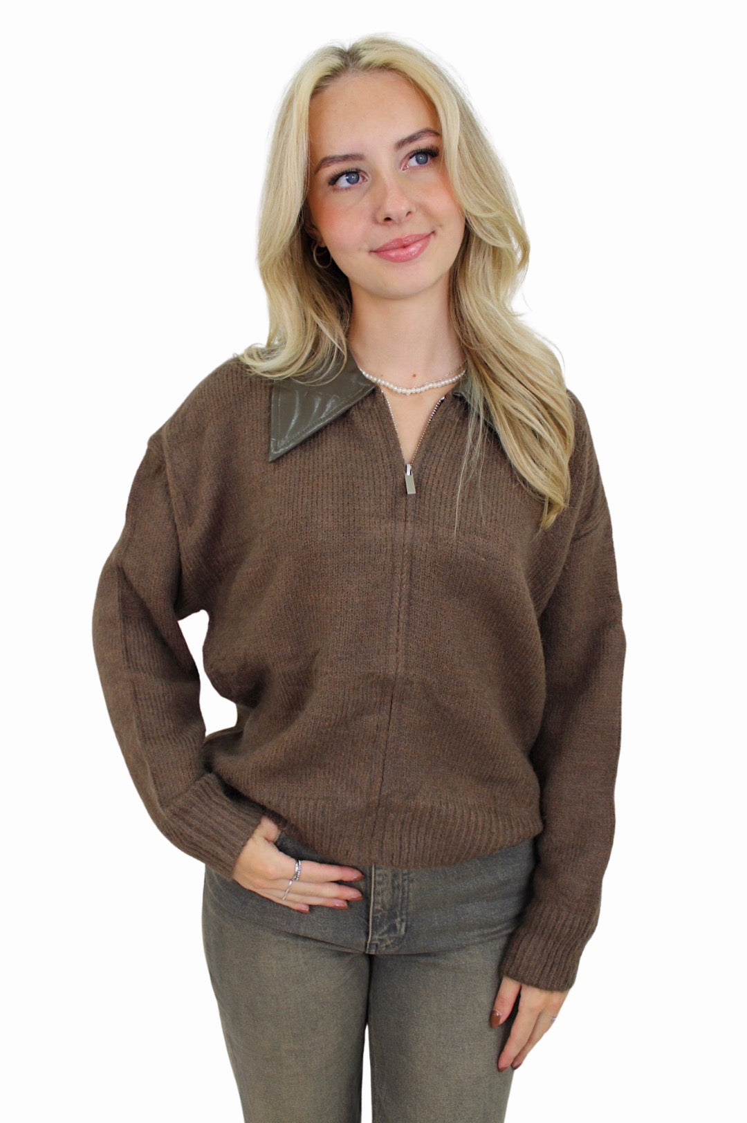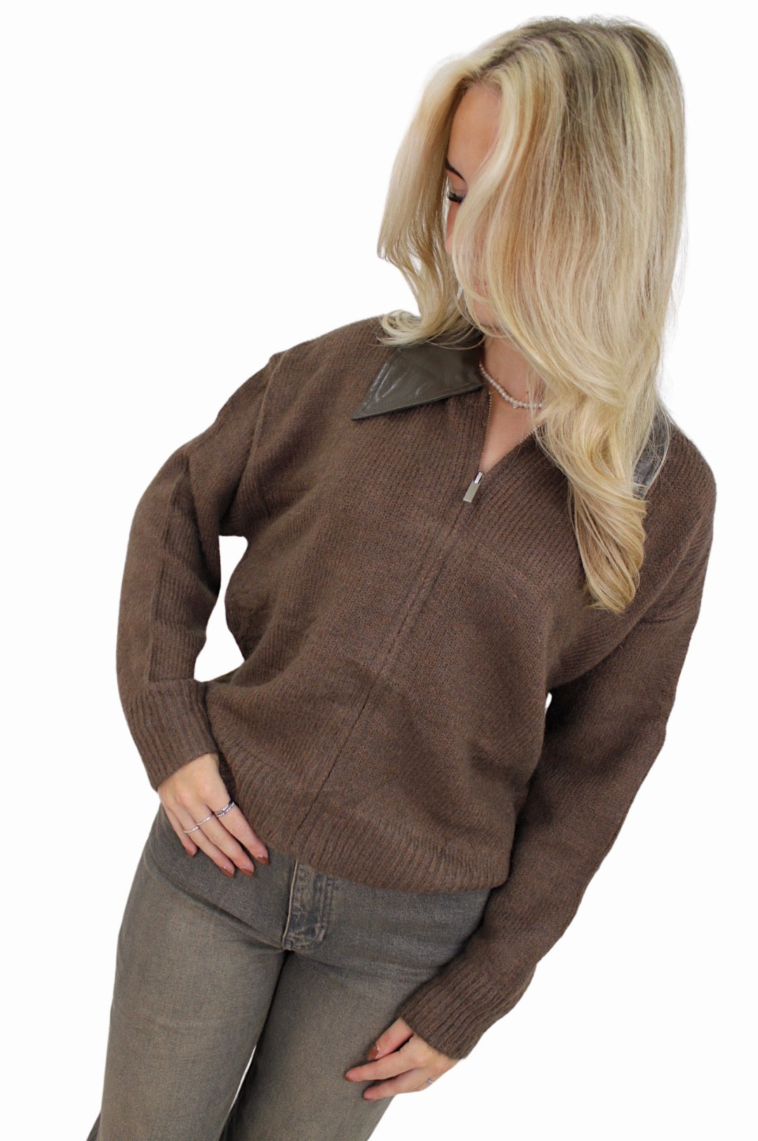 - Leuk trendy vestje met een rits en leuk leather detail in de kraag.