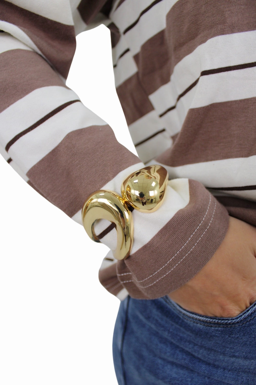 Mooie grote bangle. De bangle kun je open en dicht klikken. TIP! Leuk te dragen over blazers, jasjes en truien... Lees meer
