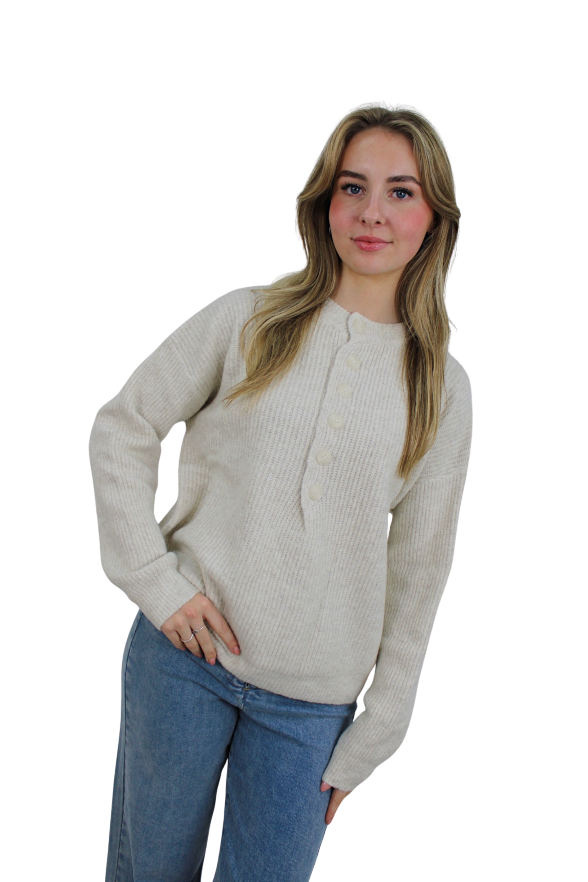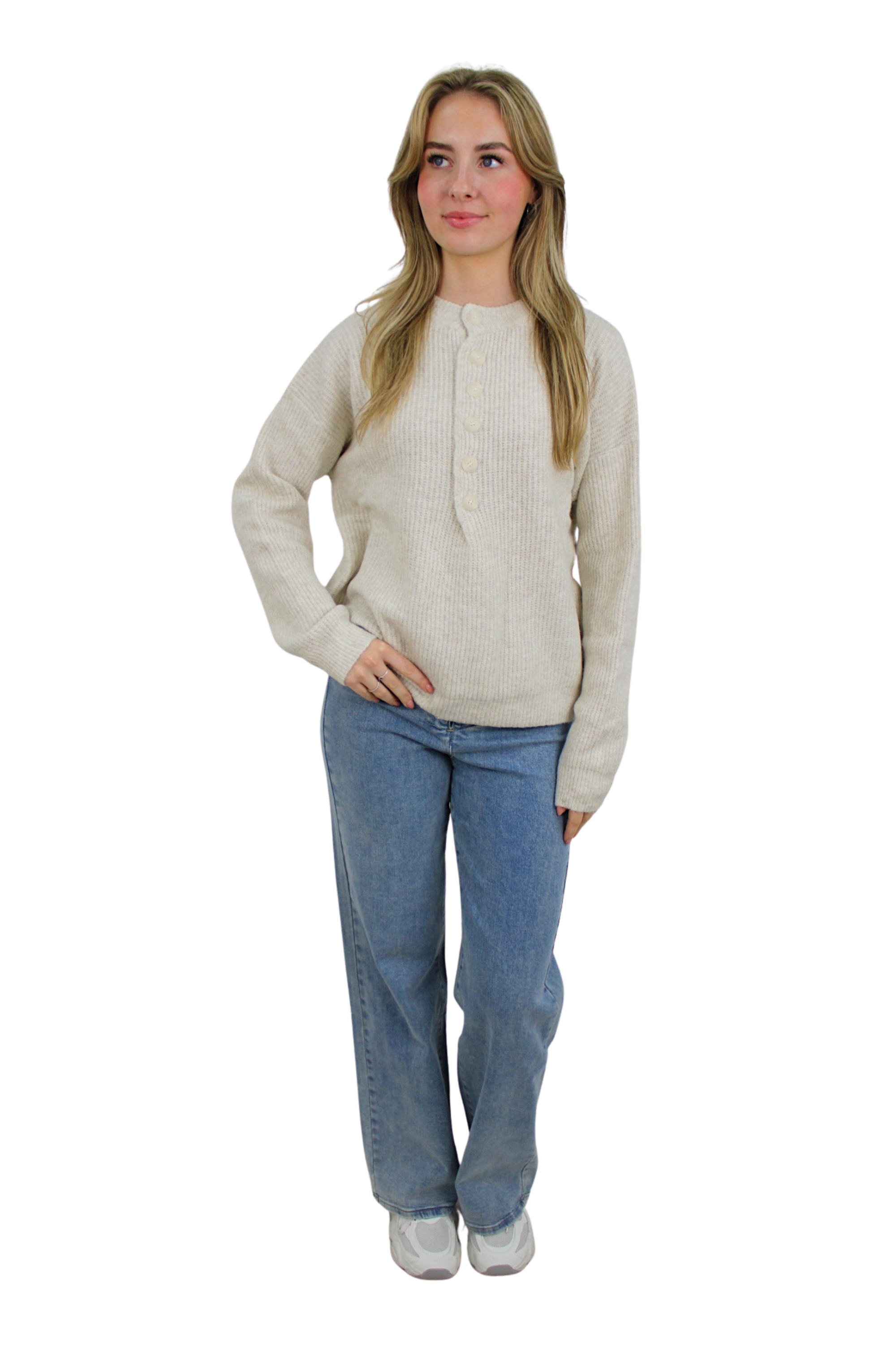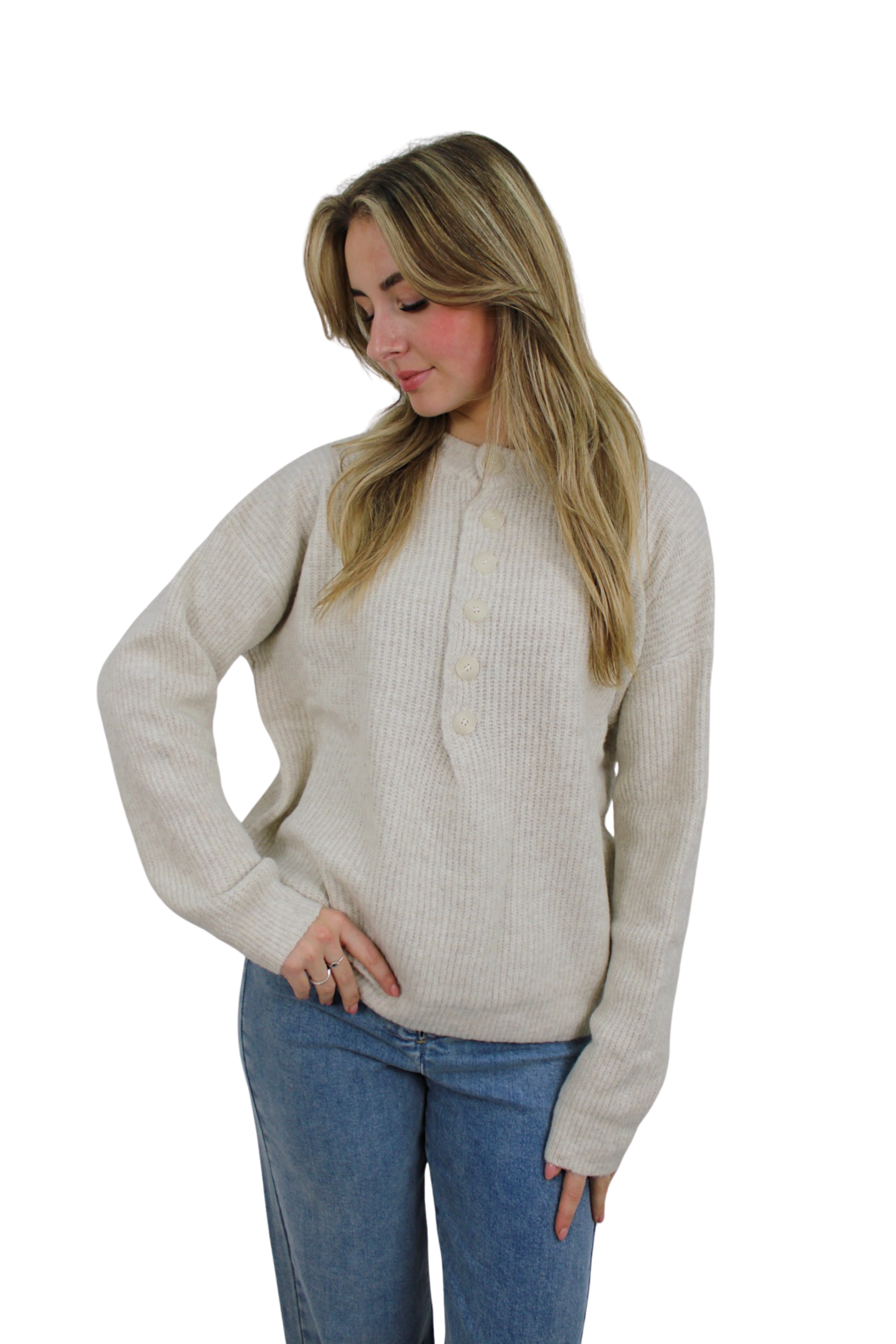 SADIE BASIC BUTTON KNIT | BEIGE