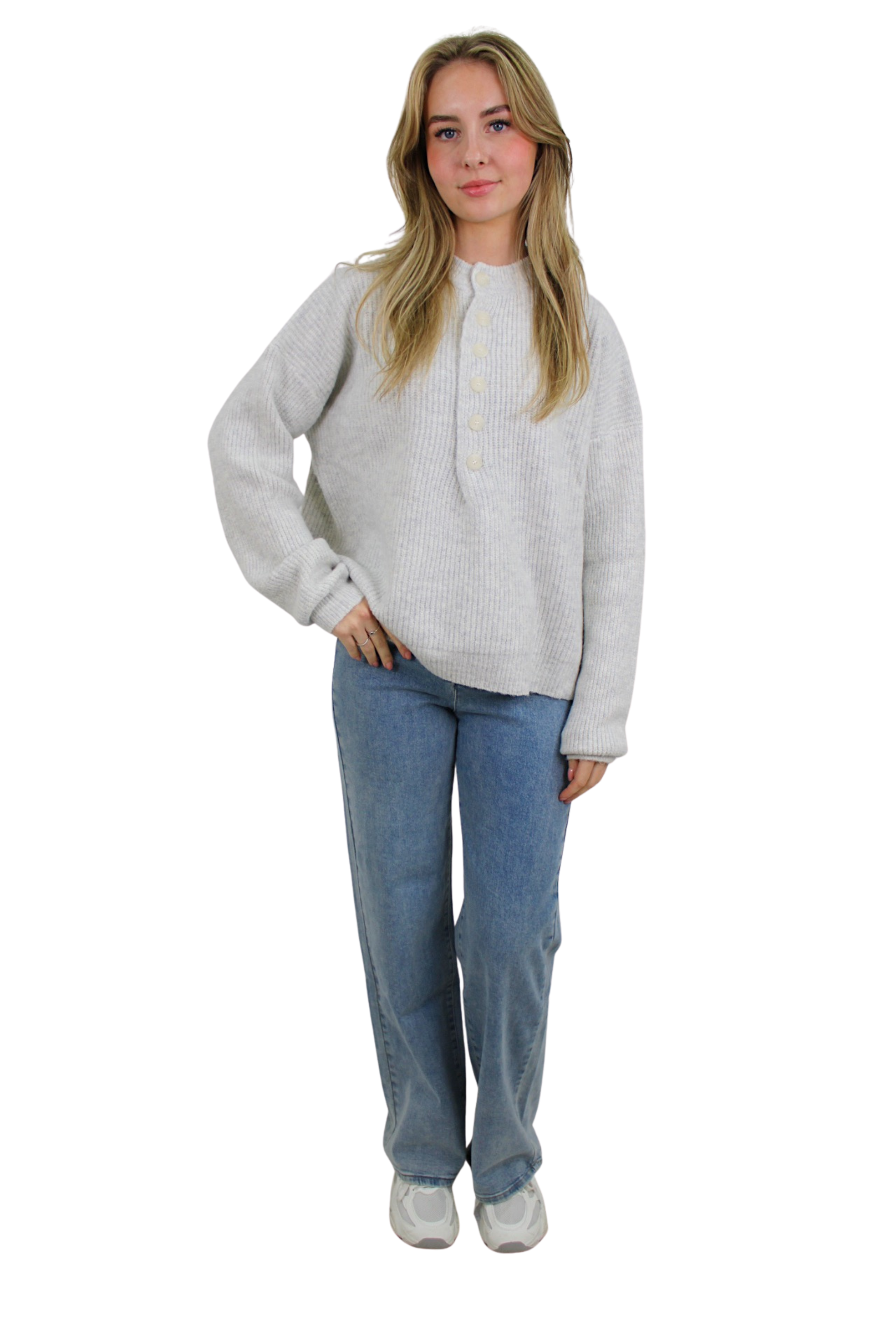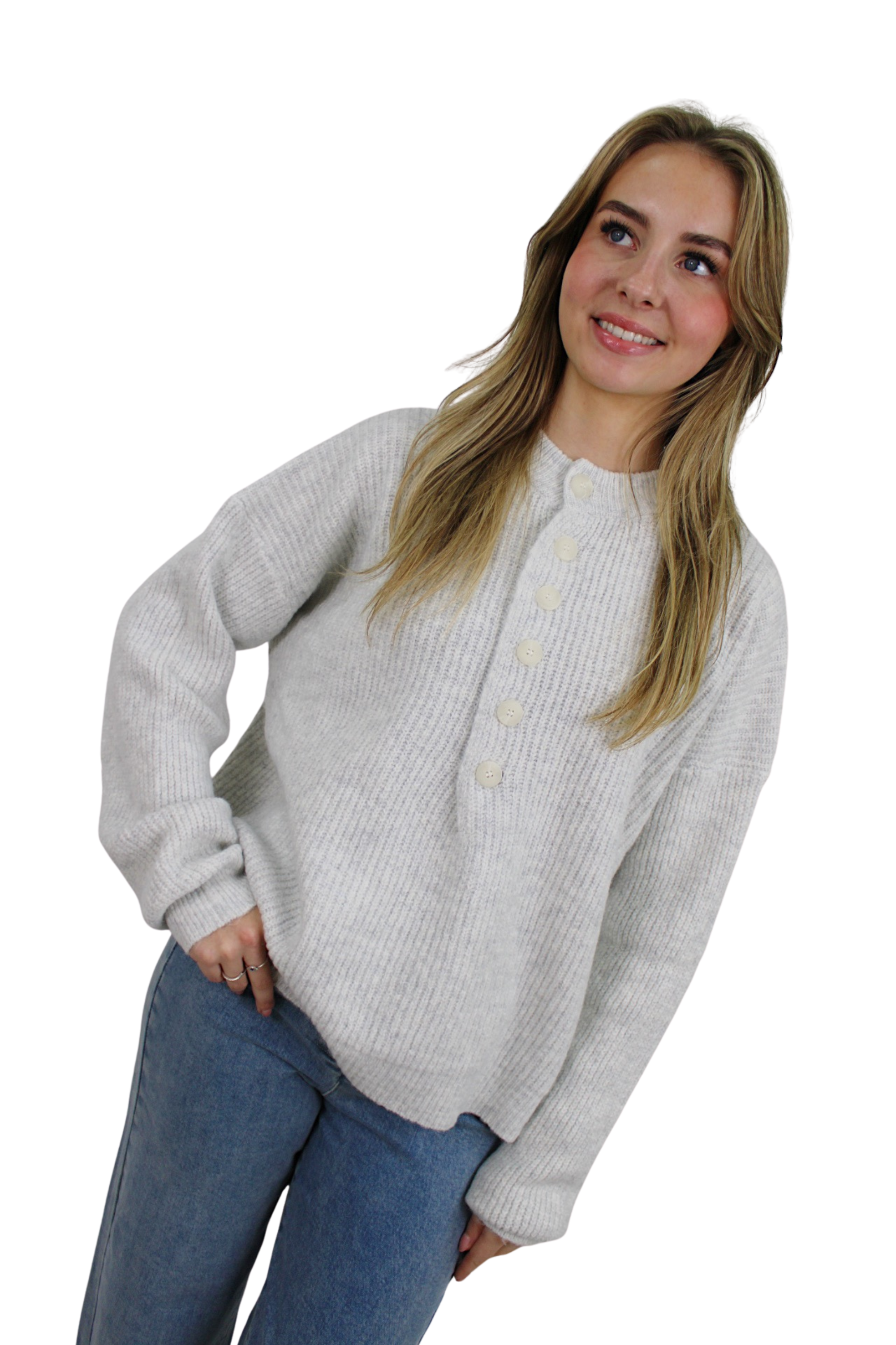 SADIE BASIC BUTTON KNIT | LIGHT GREY