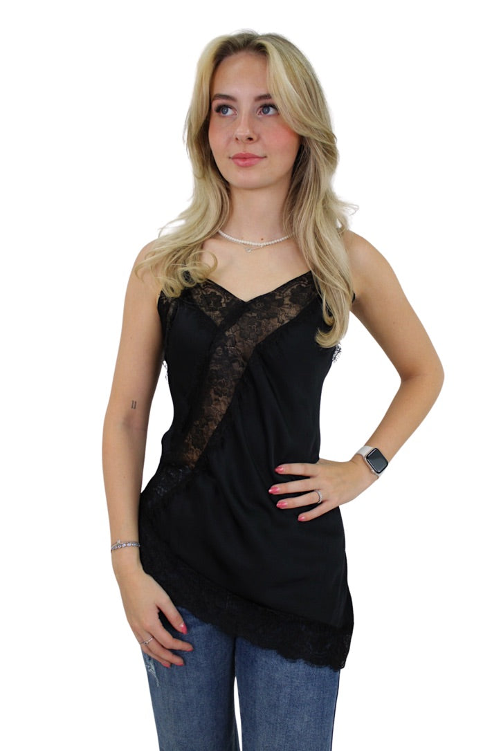 SATIN LACE TOP | BLACK