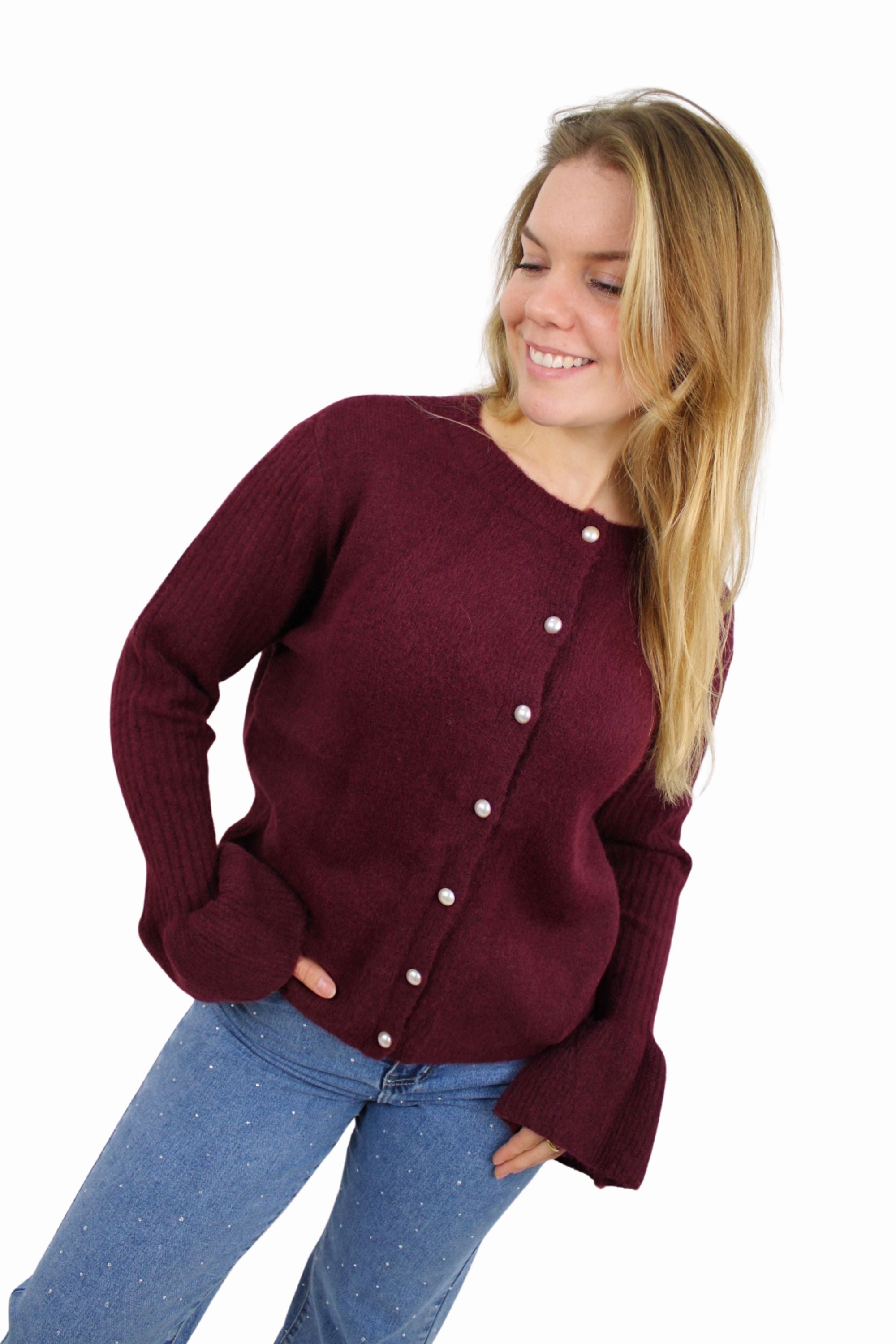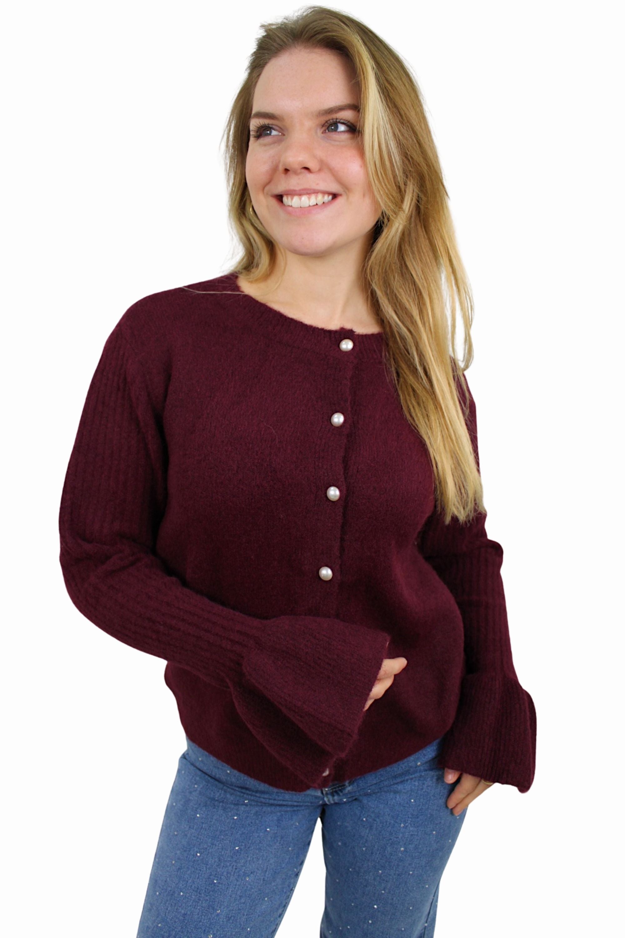 SOFT PEARL CARDIGAN | AUBERGINE