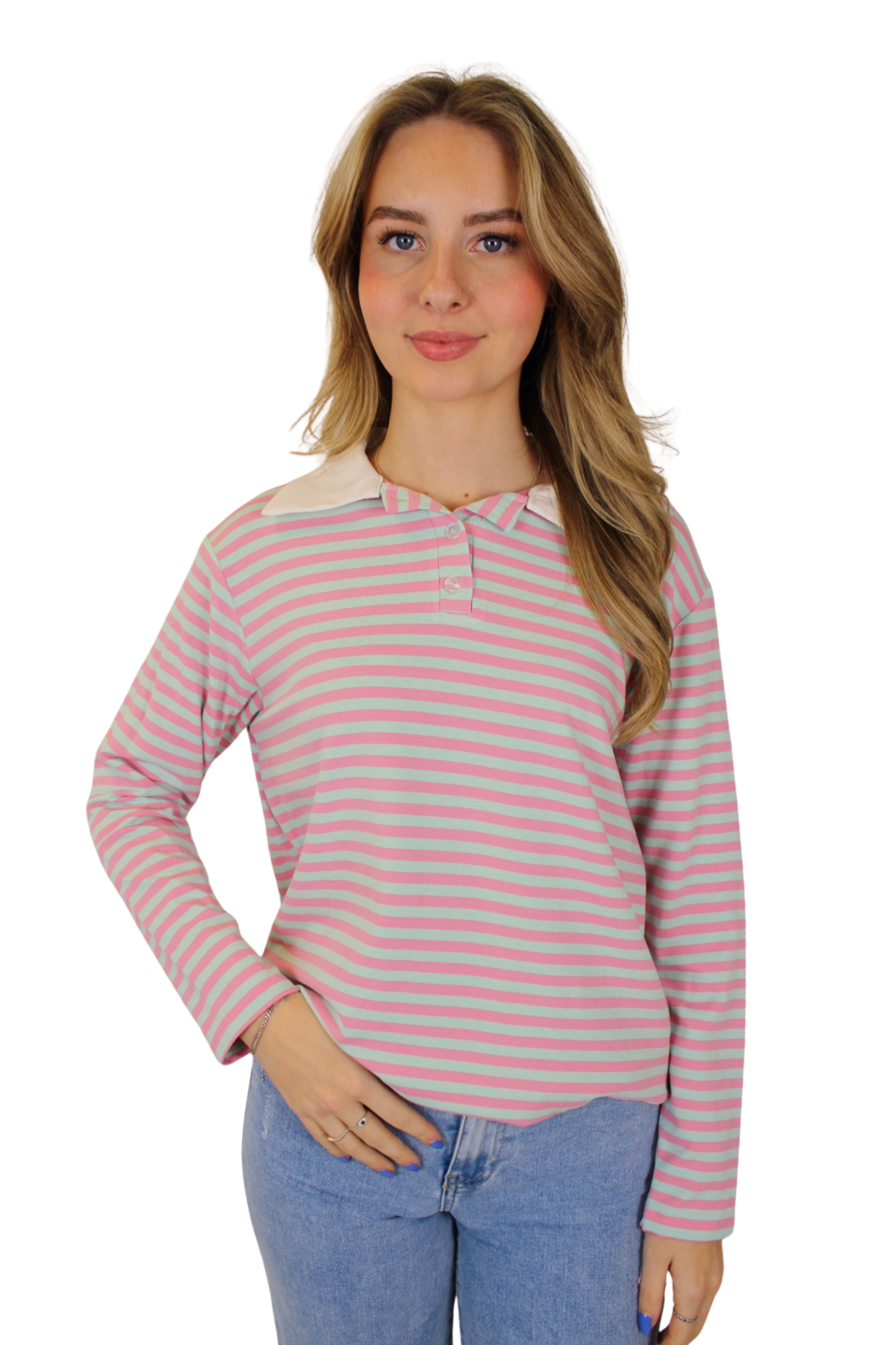 STRIPED POLO LONGSLEEVE | BLUE/BABYPINK