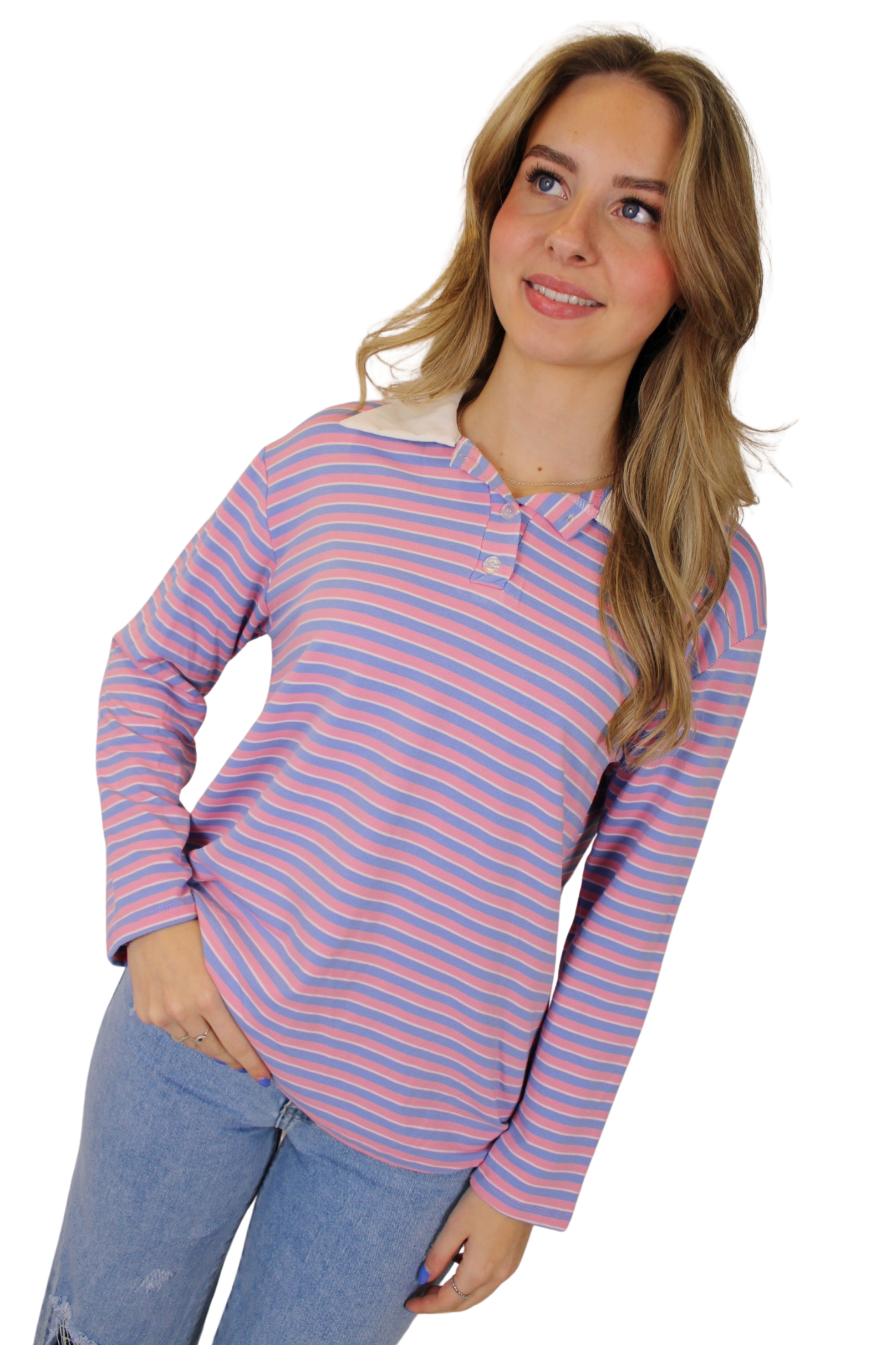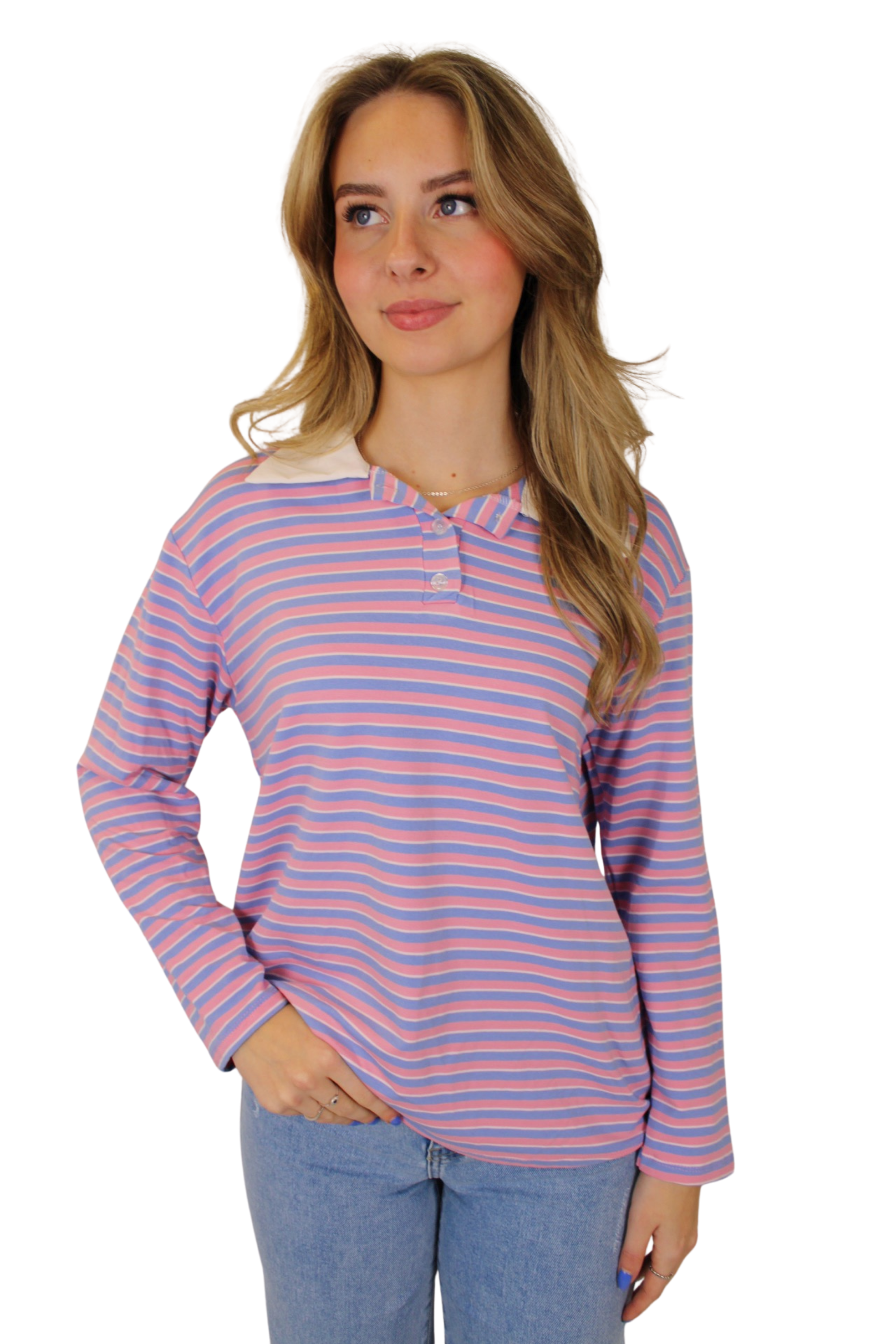 STRIPED POLO LONGSLEEVE | LILA/BABYPINK