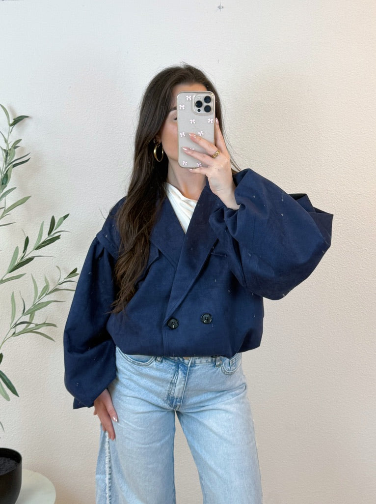 SUEDE BOMBER JACKET | NAVY