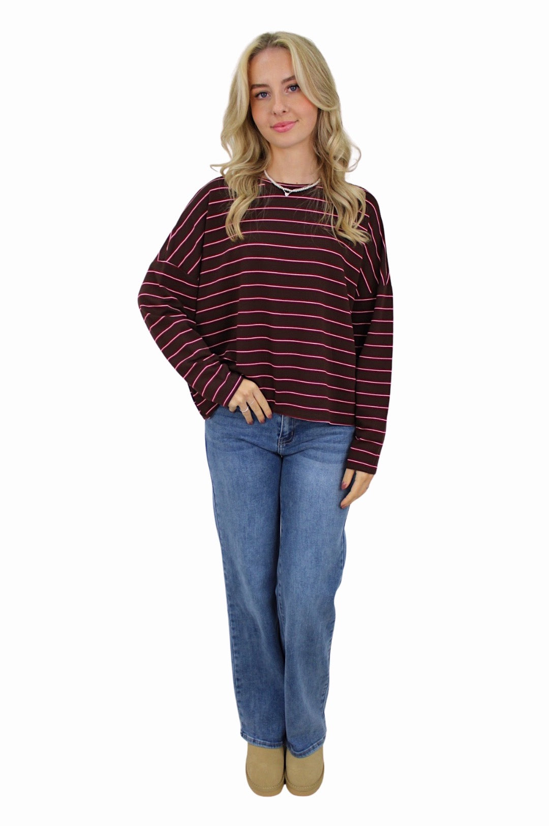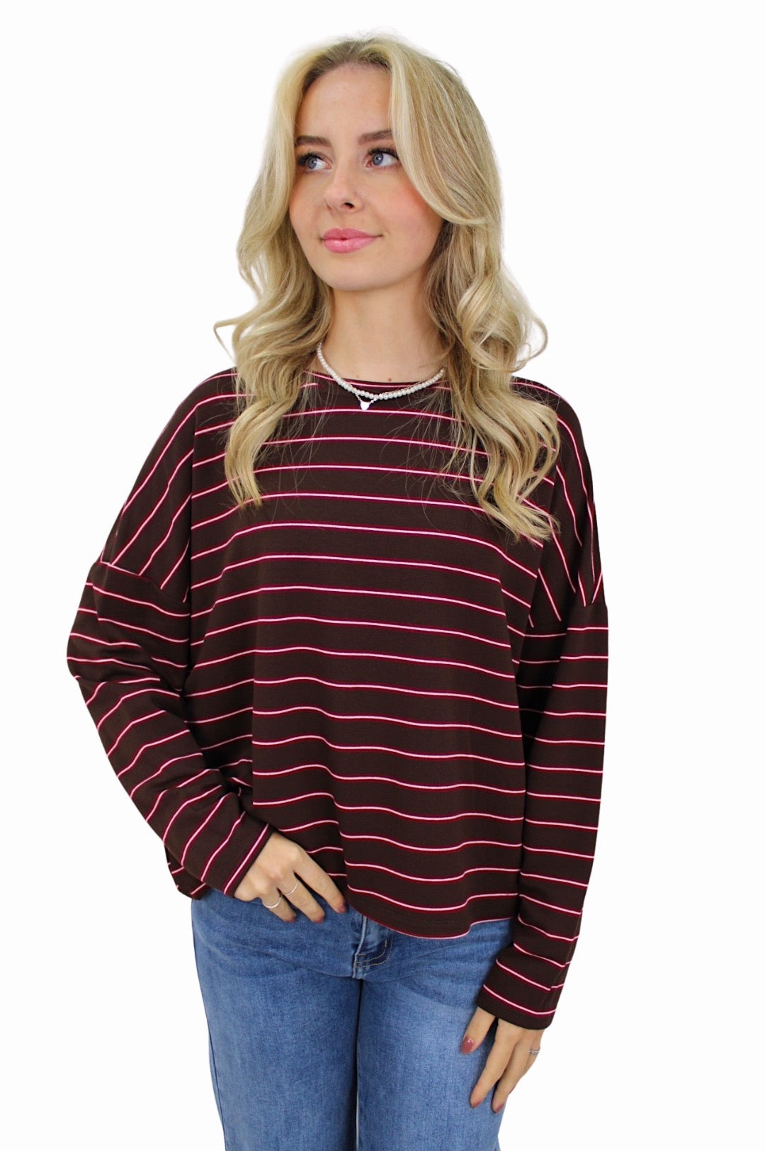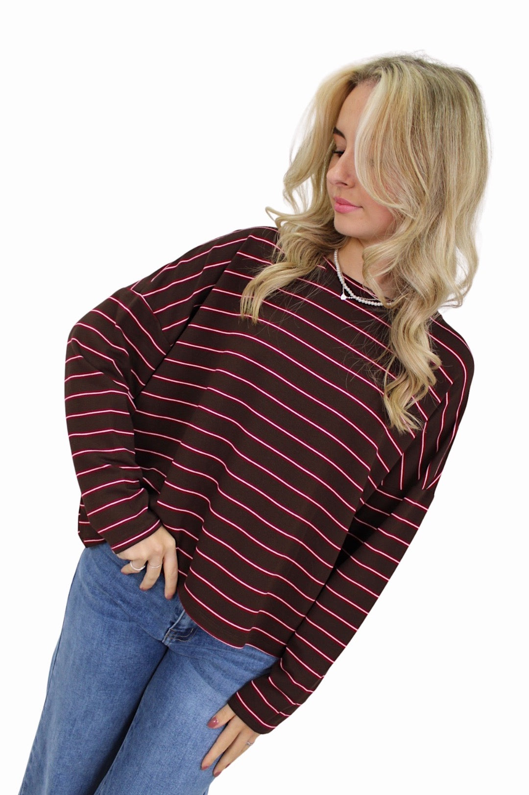 T-SHIRT LONG SLEEVE DOUBLE STRIPED | BORDEAUX/BROWN
