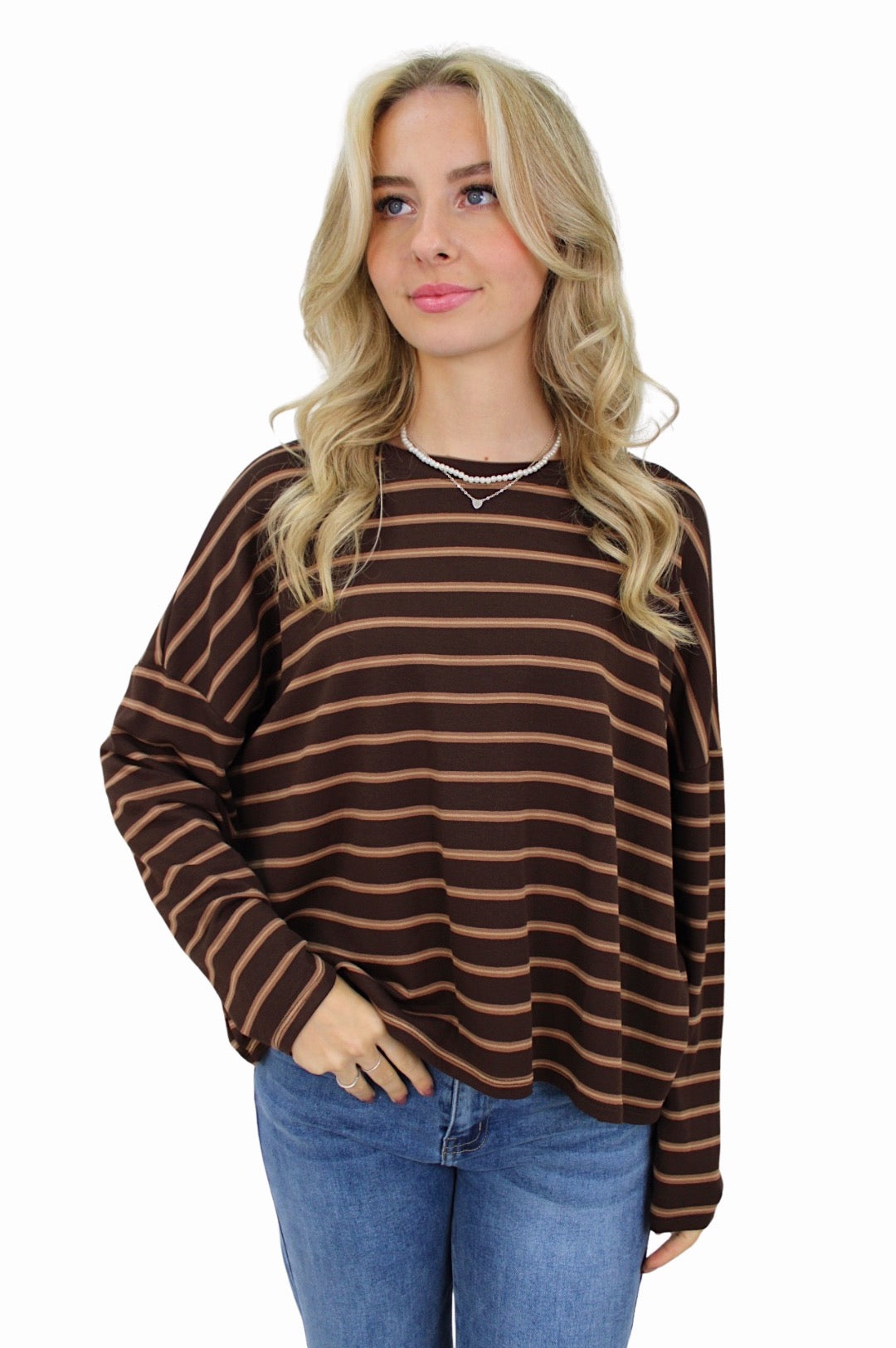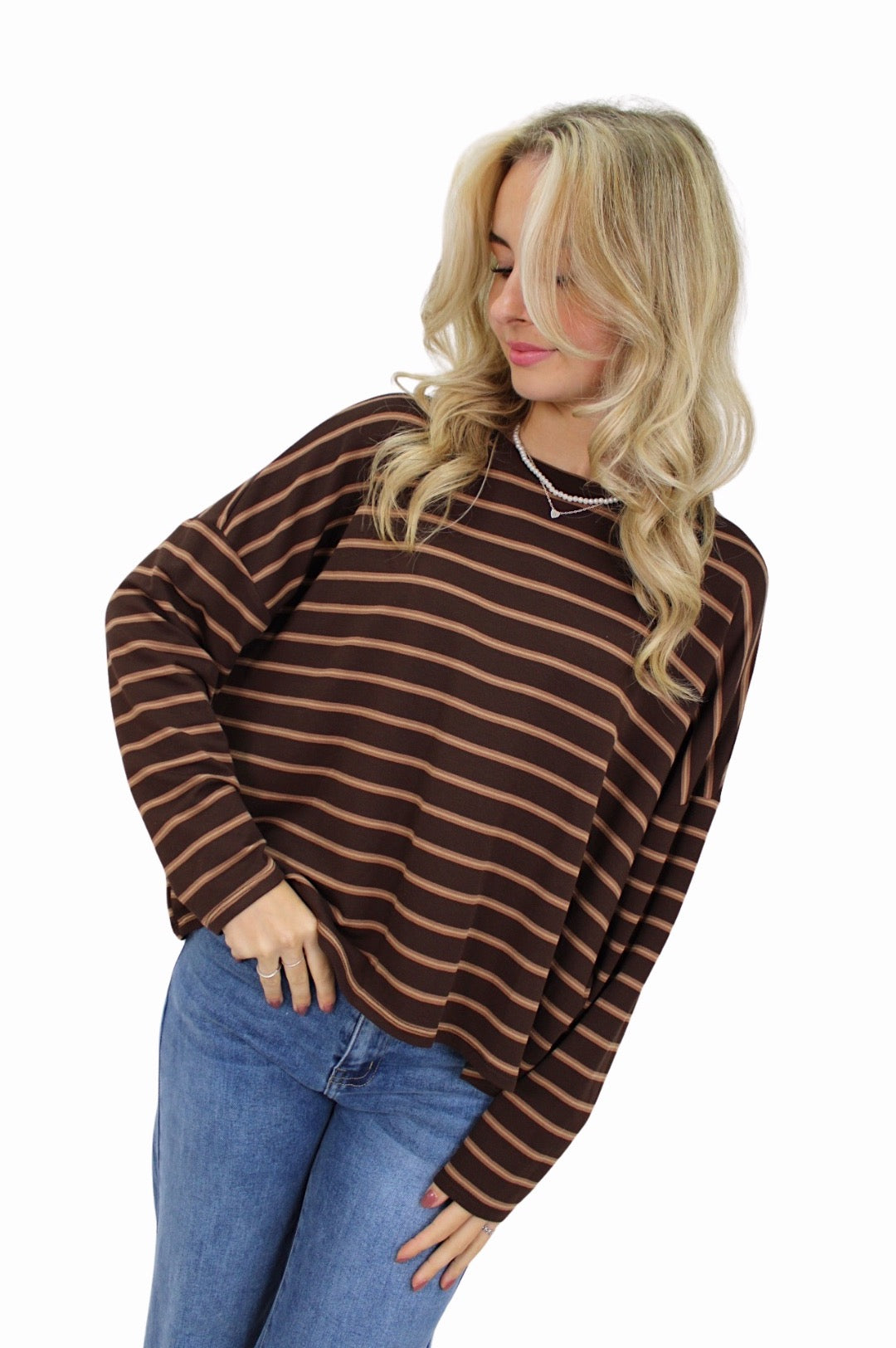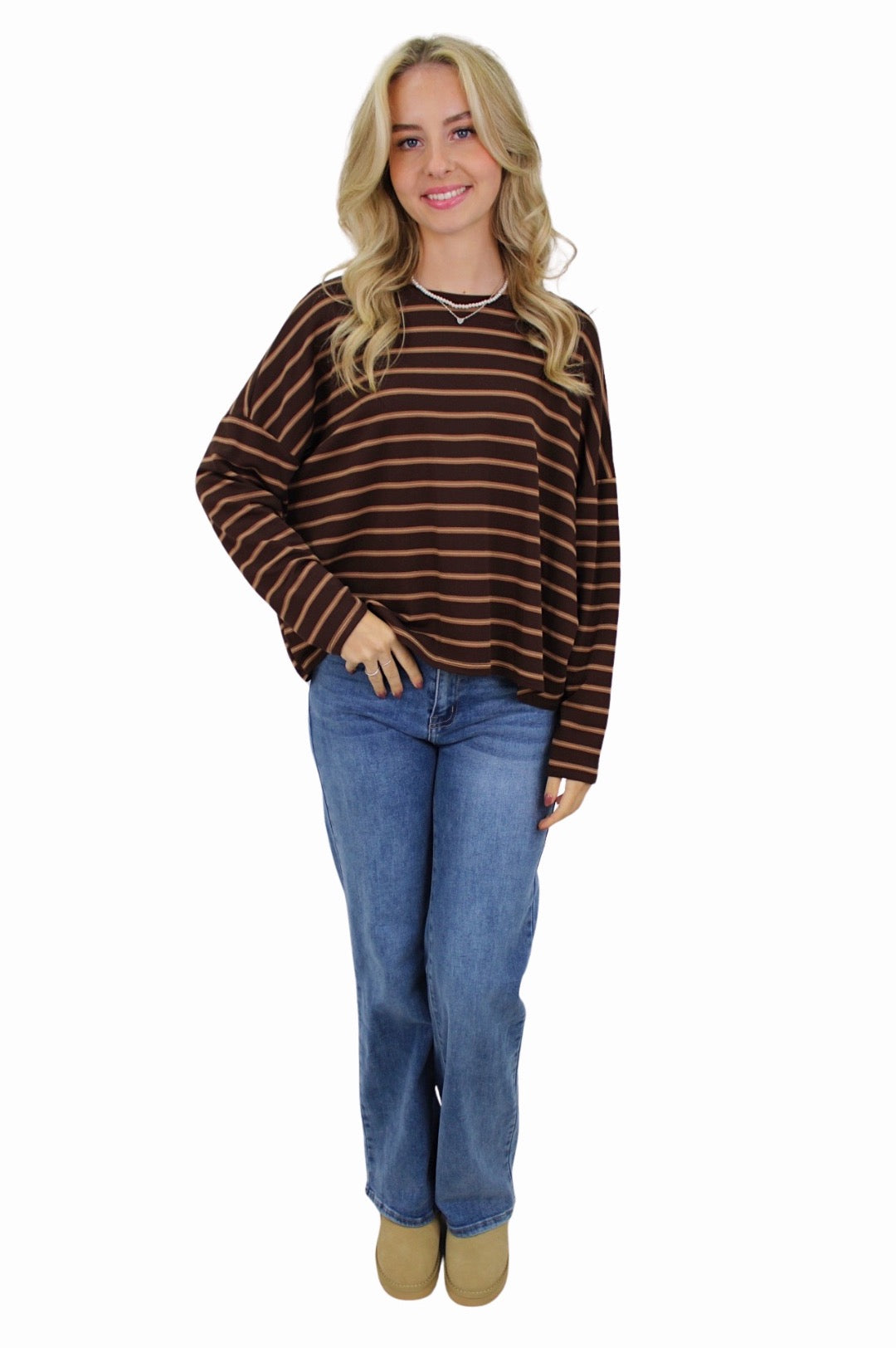 T-SHIRT LONG SLEEVE DOUBLE STRIPED | CAMEL/BROWN