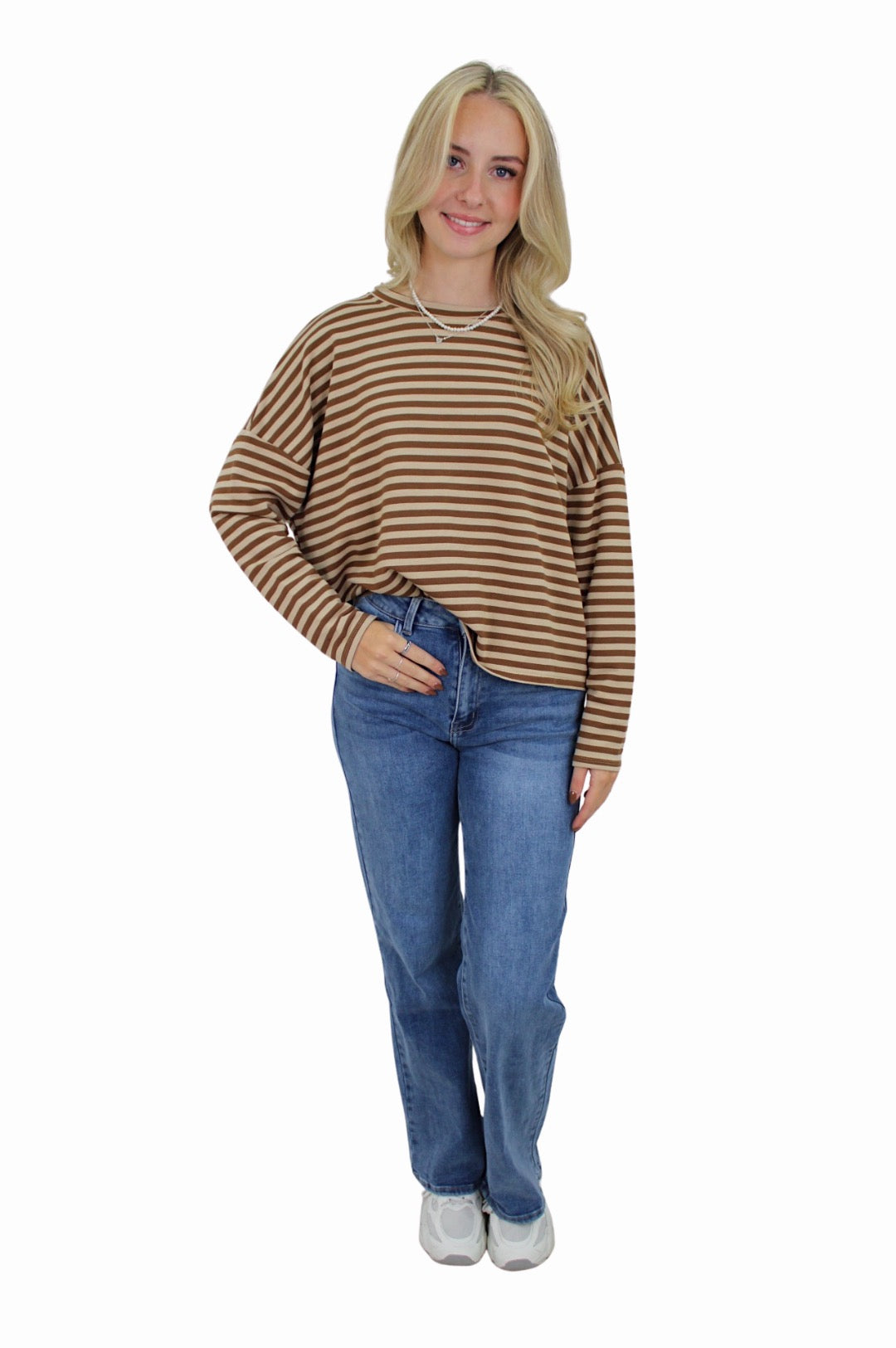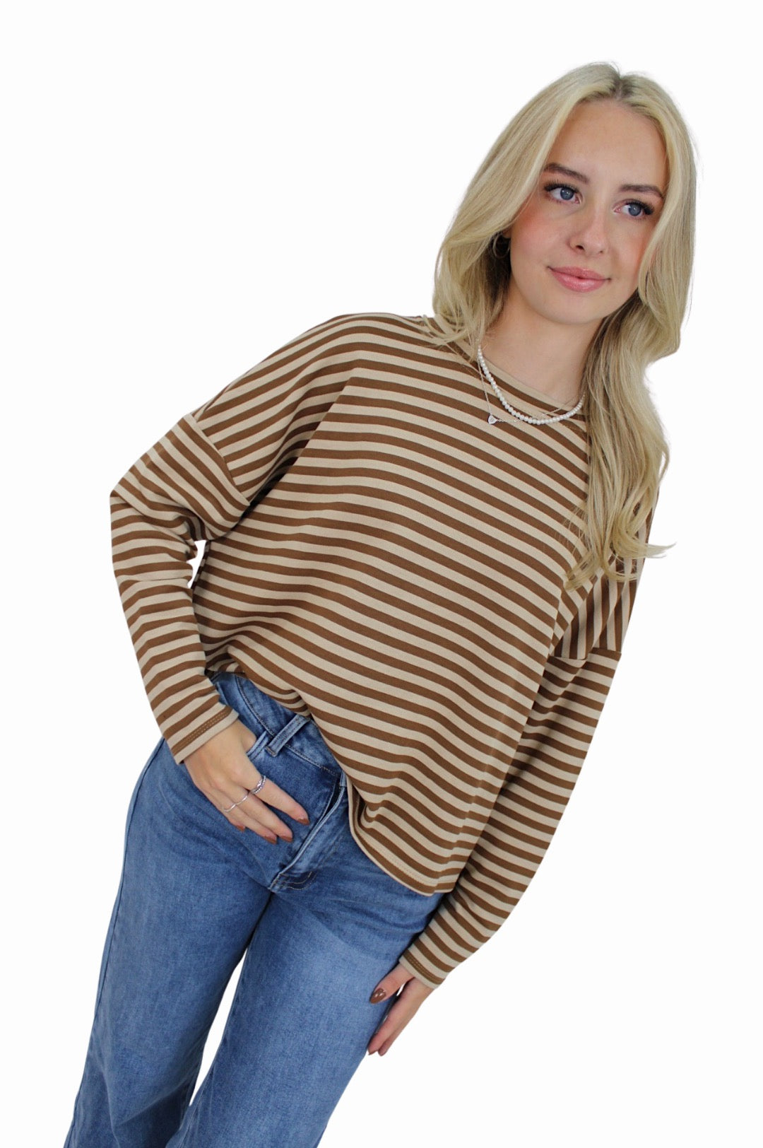 T-SHIRT LONG SLEEVE STRIPED | BEIGE/TAUPE