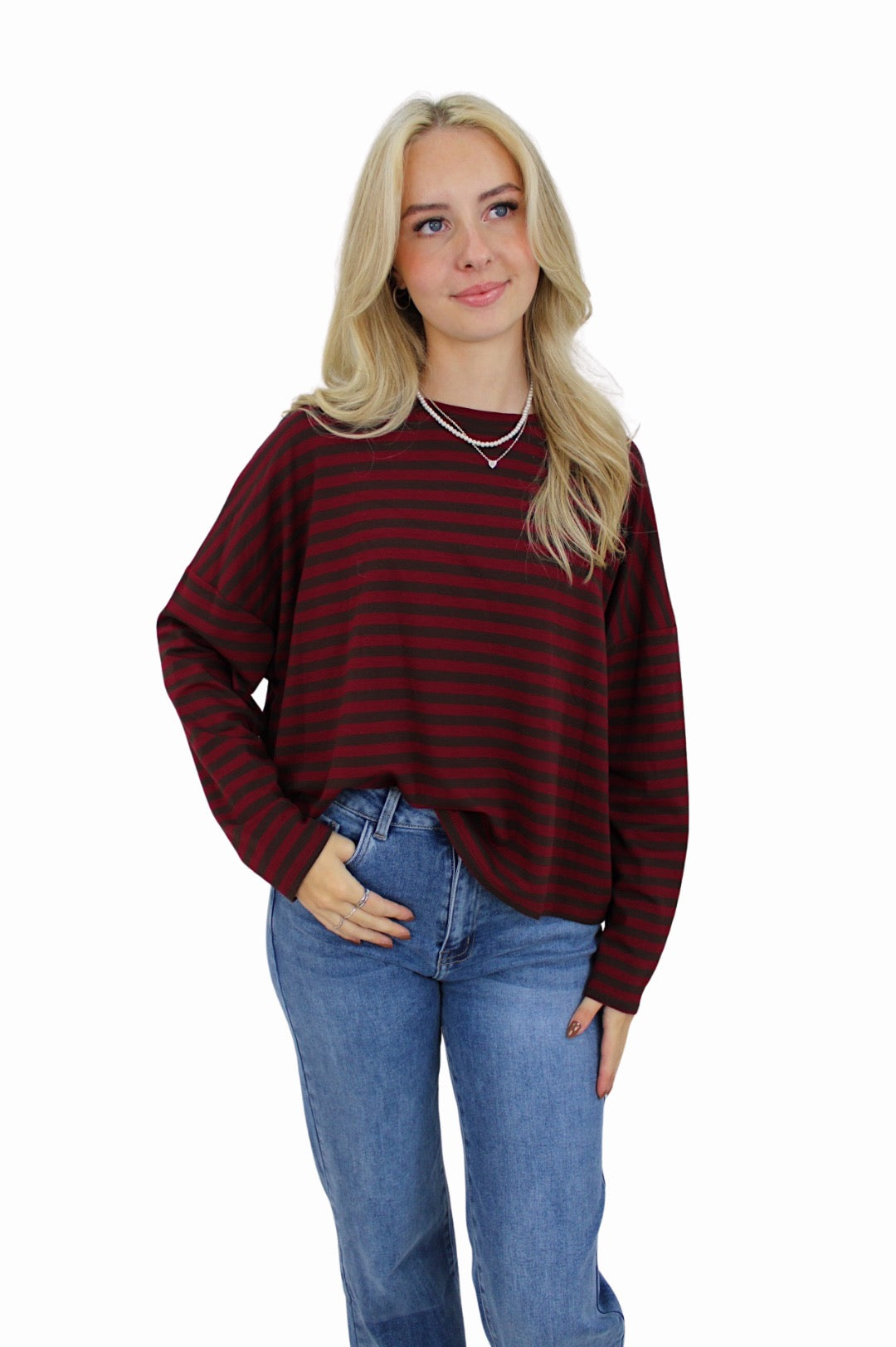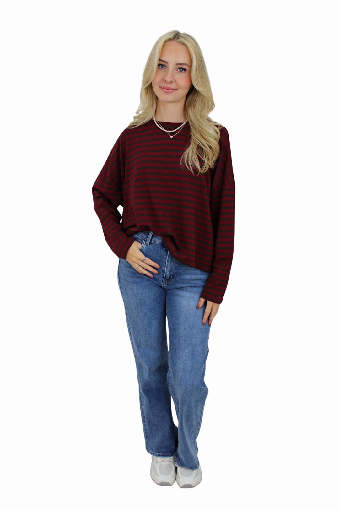 T-SHIRT LONG SLEEVE STRIPED | BROWN/BORDEAUX