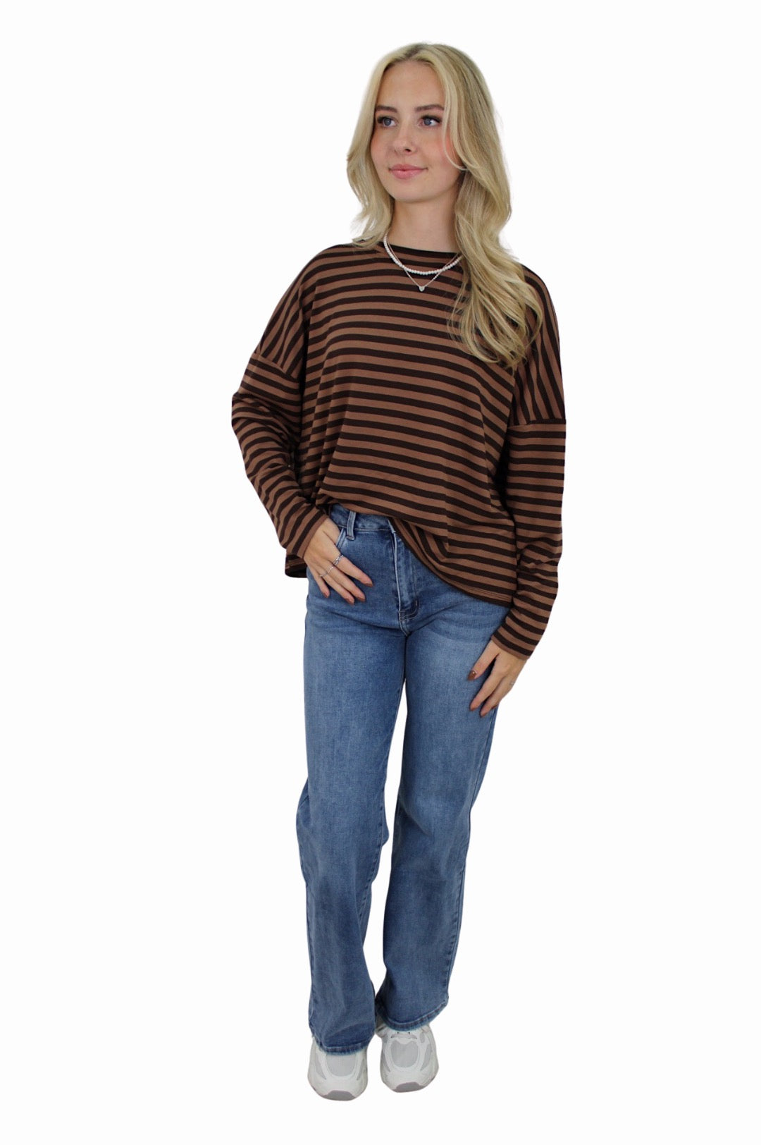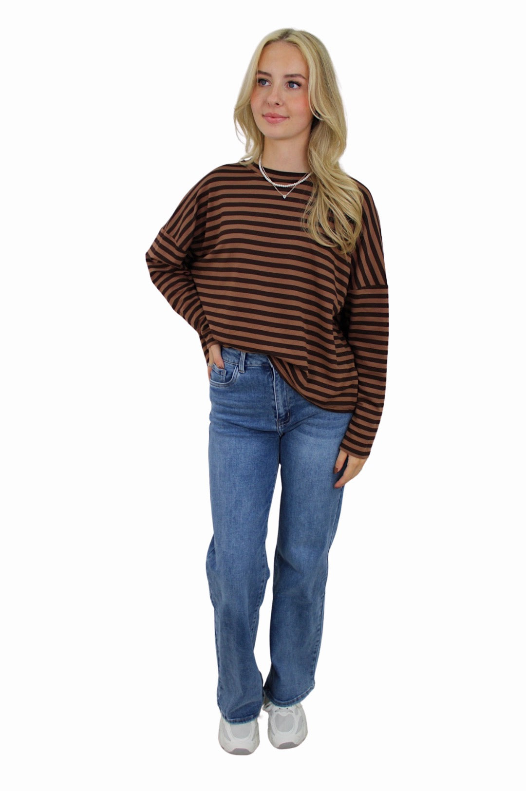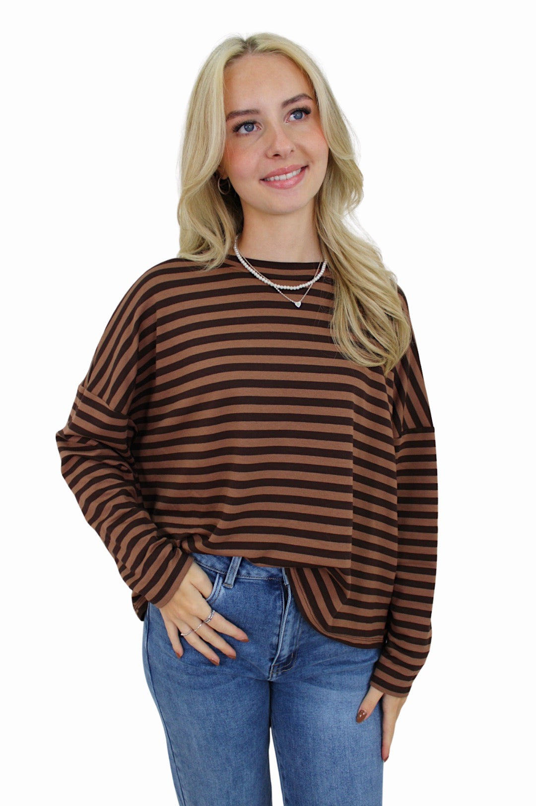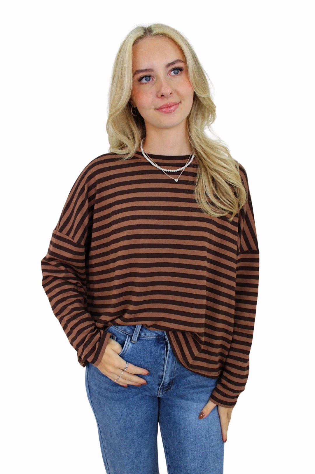 (PRE-ORDER WEEK 42) T-SHIRT LONG SLEEVE STRIPED | BROWN/TAUPE