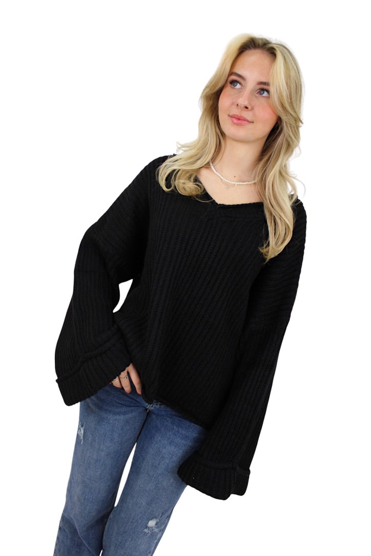 Heerlijke oversized knit met V hals en uitlopende mouwen. De trui heeft een heerlijke zachte, stretchy stof. De trui kriebelt... Lees meer